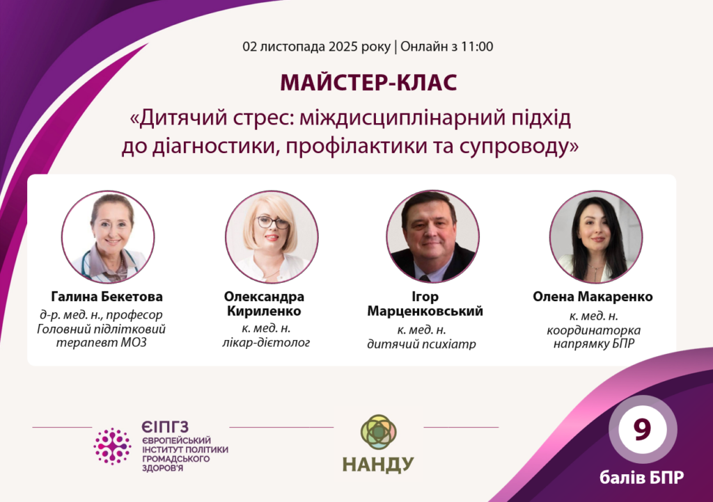 Фахівці сфери охорони здоров’я, які працюють за спеціальностями, переліченими в описі заходу, отримають за участь сертифікати про нарахування 9 балів БПР за умови надання 70% правильних відповідей на підсумковий тест.